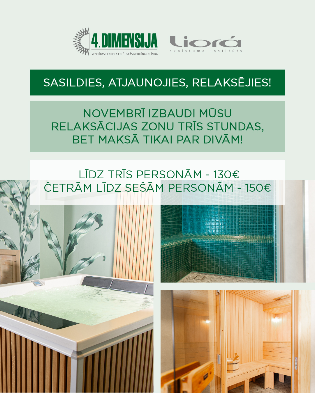 Novembrī izbaudi klīnikas “4.Dimensija/Liora” relaksācijas zonu trīs stundas, bet maksā par divām!